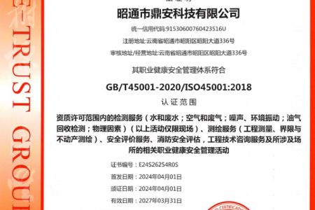 2003年11月10日,昭通市鼎安科技有限公司成立,初始主要從事第三方安全工程技術(shù)服務(wù),經(jīng)多年運營,發(fā)展為多專業(yè)綜合科技平臺,為社會提供多種專業(yè)技術(shù)服務(wù)工作。 現(xiàn)公司注冊資金為1200萬元,公司法定代表人:毛衛(wèi)旭。公司主要業(yè)務(wù):安全評價、安全標準化評審、安全工程技術(shù)服務(wù);環(huán)境監(jiān)測、職業(yè)衛(wèi)生檢測、檢驗;法律訴訟及非訴訟服務(wù);司法鑒定、固定資產(chǎn)投資項目節(jié)能服務(wù);工程咨詢;工程測量測繪;安全教育培訓等。是安全生產(chǎn)服務(wù)、安全教育培訓機構(gòu),也是環(huán)境監(jiān)測和職業(yè)衛(wèi)生服務(wù)機構(gòu),同時也是綜合的檢測檢驗、綜合科技平臺服務(wù)機構(gòu)。多年來為公、檢、法、司、軍、警、海關(guān)、仲裁、安監(jiān)、工礦商貿(mào)企業(yè)、社會團體及個人提供多專業(yè)技術(shù)服務(wù)。